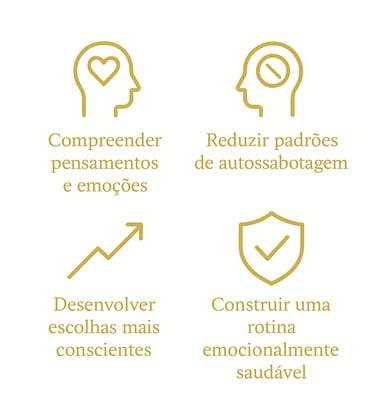 Durante as sessões, utilizamos técnicas comprovadas da Terapia Cognitivo-Comportamental para:
